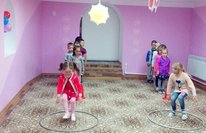 Халык уеннарын бик яратабыз.Берничә тапкыр "Утыр, утыр Мәликә" уеның уйнасак,аннары сүзләрне рус телендә әйтеп "Водяной"уеның уйнадык. Шулай үк "Море волнуется" "Баба Яга" уеннарын балалар яратып уйныйбыз.