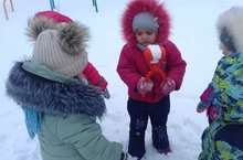 Без бүген саф һавада физкультура эшчәнлегендә алган күнекмәләрне - тар өслектә тигезлекне саклап йөрүне, ун һәм сул куллар белән кар йомарламнарын атуны ныгыттык. Ә кар йомарламнарын Ясминәнең махус көрәге ясап. өлгертеп торды.