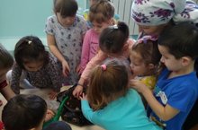 Уртанчылар-зурлар төркемендә яшел кыягын үсешен күзәтү максатыннан суган уртыртык. Үсү өчен нинди шартлар кирәк булуы хакында сөйләштек. Балалар белән көн саен күзәтеп торырга дип килештек.