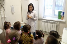 Дети 2 младшей группы побывали в кабинете медицинской сестры. И наша медсестра Чулпан Фаргатовна познакомила детей со своей профессией. Дети внимательно слушали Чулпан Фаргатовну.