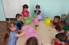 Сегодня ребята с большим удовольствием, желанием рисовали на шариках. Шарики со цветочками, звездочками, кружевами, кружочками получились очень красивыми.