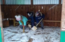"иңәшле эш таркалмас" , - ди халык мәкале. Малайлар бик тырышып кечкенә машиналарга гараж төзиләр.