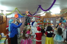 Яңа ел бәйрәме! Кыш бабай кечкенә балаларга килгән, күп бүләкләр алып килгән.