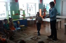 Мәктәпкә әзерлек төркем балалары алдында ПДН инспекторы ярдәмчесе Ләйлә Фәргатовна чыгыш ясады. Ул үзенең чыгышында янгын, аның сәбәпләре, куркыныч очракларда югалып калмыйча, дөрес шалтратырга өйрәтте. Сәбәпсез, уйнап шалтратучыларга нинди җәза булганын кисәтте.