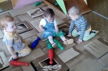 Без кечкенә булсак та кеглиләр, туплар белән уйныйбыз.