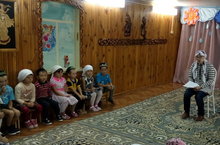 Бүген музыка залында балалар белән тәрбияче Раушания Фаиловна әңгәмә үткәрде. Аллахы тәгәлә нинди зат ул, ул безгә нинди булырга куша? Нинди кешеләр әйбәт була, моның очен нәрсә эшләргә кирәк кебек сорауларга җавап әзләделәр.
