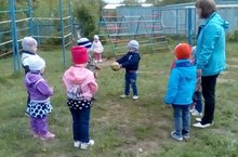 Кечкенәләр төркеме тәрбиячесе Юсупова Р.М. саф һавада туп белән күңелле хәрәкәтле уеннар оештыра.