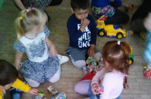 У нас сегодня - день транспорта. Мы вышли на улицу и внимательно наблюдали проезжавших машин, и определяли какая машина - легковая, а какая - грузовая.