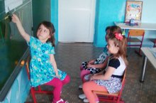 Залия мечтает стать воспитателем. Она проводит занятие по математике с подругами.