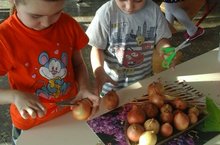 Дети I младшей группы со своей любимой воспитательницей Ильсияр апа сажают луковицы.