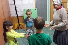 Играя в словесные игры у детей закрепляется память, развивается и обогощается словарный запас. (Дети играют в игру "Снежный ком лови - слово зимнее скажи).