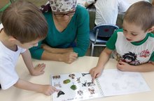 Играя в дидактические игры у детей развивается память, обогощается словарный запас. Карим и Данис ищут слова, которые начинаются на букву "К".