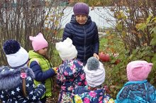 Дети подготовительной группы беседуют о прелестях осени во время прогулки. 24.10.2016