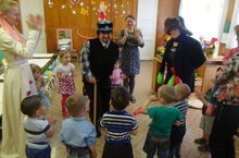 Дети подготовительной группы выступают со сценкой "Колобок" на новый лад