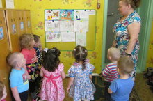 I кечкенәләр төркеме тәрбиячесе Лутфуллина З.Ә. балаларны "Тукай безнең күңелебездә" рәсем күргәзмәсе белән таныштыра. 12.04.2016