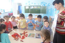 Средняя группа играют в дидактическую игру "Мы - пожарники", в целях профилактики пожаров на тему: "Профилактика гибели детей на пожарах и предупреждение пожаров по причине детской шалости с огнем".