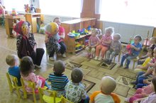Бездә бүген кунаклар бар, безгә бүген күңелле. Ә кунаклар кем, дисезме? Әби һәм бабай килде. Беренче кечкенәләр төркеме балалары әкият тыңлыйлар. 11.02.2016