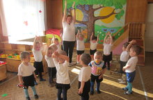 I кечкенәләр төркемендә күңелле итеп иртәнге гимнастика үткәрәбез. 08.10.2015