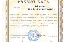 I категорияле тәрбияче Юсупова Резеда Мидхатовнага "Милләтебез алдындагы олы хезмәтләрен искә алып,татар халкының телен,мәдәниятен үстерүдә ,гореф-гадәтләрен саклап калуда зур эшләре өчен", "Бөтендөнья татар конгрессы " иҗтимагый берләшмәсе "Рәхмәт хаты "тапшырды. 15.10.2015