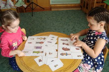 Насима и Ралина играют в дидактическую игру"Большой-маленький".Дети учатся правильно произносить названия предметов,упражняются в подборе определения для предмета. 08.05.2015