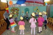 Музыка эшчәнлегендә уртанчылар төркеме балалары “Шаян чебиләр” (А.Минһаҗев суз., Ә.Һадиева көе) җырын башкаралар. Шаян чебиләр барсы да Түгәрәккә килгәннәр. Әтәч белән бергәләшеп Җырлап алыйк, дигәннәр. 02.04.2015