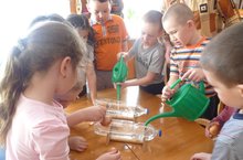 Мәктәпкә әзерлек төркеме балалары суганның тамырлары үсешен, тамырлары белән су суыру, туклану процессын күзәтү максатыннан тәҗрибә өчен суганны суга утырттылар. 08.04.2015