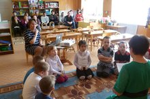 Воспитатель по обучению русскому языку Гарипова Д.С. провела открытый урок для родителей и учителей начальных классов. Дети внимательно слушают и исправляют ошибки Незнайки. 24.03.2015