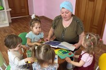 Первая группа раннего возраста с удовольствием занимаются по рабочей тетради "Уйный-уйный өйрәнәм".