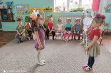 Кече яшьтәгеләрнең икенче төркеме балалары белән без Г.Тукайның "Гали белән кәҗә" шигырен балаларга бик куңелле итеп сәхнәләштереп курсәттек. Балалар узләренең сөйләу осталыкларын бик теләп курсәттеләр.
