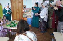 "Ак калфак"лыларны аерым булмэдэ мэктэпкэ эзерлек торкеме кызлары белэн логопед Камалиева Лилия Ринатовна хэм анын тырыш кызлары каршы алды. " Эшлэгэнегез минем очен булса, ойрэнгэнегез узегез очен" дип кызларны "Серле энэ" остэмэ белем биру эшчэнлегендэ чигу чигэргэ , кул хэм электр тегу машинасында тегэргэ дэ ойрэтэлэр биредә. Балалар инде тоймэ тагарга да ойрэнгэннэр. Килэчэктэ булдыклы, эш соючэн кешелэр тэрбиялэугэ беренче нигез монда салынуга,ин гади хезмэт кунекмэлэре бирелугэ килгэн кунаклар ышанып, куреп киттелэр