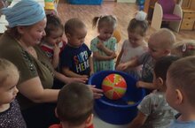 Эта неделя здоровья, дети 1 группы раннего возраста провели эксперимент с водой. Наблюдали как легкие и тяжелые предметы противодействуют с водой.