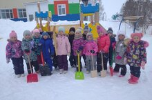 Бүген урамда рәхәтләнеп "Кошлар читлектә", "Саекан" хәрәкәтле уеннарын уйнадык, туя агачларын күзәттек, кар йомарламнарын ераклыкка ыргыттык, кошларга җим салдык, беседканы, мәйданчыкны кардан чистарттык.