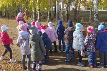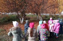 Саф һавага чыккач балалар белән экологик сукмак буйлап сәяхәткә чыктык. Җимеш бакчасындагы алмагач, груша, крыжовник, чия агачларын, кура җиләге куакларын күзәттек һәм алардагы көзге үзгәрешләрне атадык. Шулай үк апаларның бакчада җыештыру вакытын күзәтеп нәтиҗәләр чыгардык.