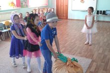 Воспитанники подготовителҗной группы провели развлечение "Сюмбеля". Отгадывали загадки, пели песенки, танөевали с разноөветными листҗями, показали сказку "Репку".
