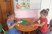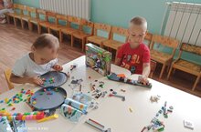 Кечкенәләр төркем балалары лего белән яратып төрле төрле карамалар төзиләр.