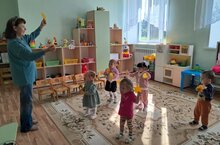 Воспитанники группы раннего возраста очень любят занятие музыки. На сегодняшнем занятии они танцевали осенними листьями, каждое движение, указанное музыкальным руководителем выполнили с точностью