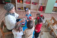 Кече яшьтәгеләр төркемендә пирамиданы төзергә, кечкенә һәм зурысын табарга өйрәнделәр.