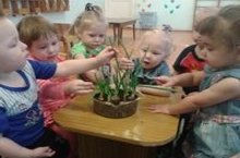 Дети ясельной группы каждый день ждут и наблюдают за тем, как растут посаженные ими луковицы и узнают о пользе "зеленых витаминов".