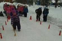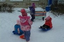 Воспитатель Инга Александровна приготовила детям старшей группы необычную прогулку: дошколята поиграли в "хоккей", покатались на лыжах, прокатили друг-друга на салазках. Они проявили спортивный азарт и волю к победе.