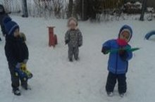 После снегопада малыши на участке не только играли в снежки, катались на санках, но и активно участвовали в уборке снега.