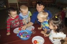 Малышам 2 младшей группы очень интересно было узнать: что же тонет, а что - нет. Вместе с Анной Викторовной они доказали: что тяжелое - тонет, а легкое - плавает.