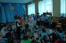В дни школьных каникул воспитатели с детьми проводят различные мероприятия. Сегодня бабушка Маланья приготовила детям музыкально-ритмические игры "Маланья","Колобок","Утром рано","Гули-гули", "Мишка-лежебока".