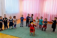 С детьми младшей группы знакомимся с детскими музыкальными инструментами: колокольчик, бубен, барабан, ложки./ Уртанчылар төркемендә музыка шөгыле./ Крезьгуръя ужъёс.