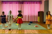 С детьми старшей и подготовительных групп подготовили музыкальный спектакль "Три сестры"./ "Өч кыз" әкиятен сәхнәләштерү