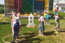 В младшей группе провели спортивное мероприятие "Путешествие в космос"./ Кечкенәләр төркеме балалары белән "Галәмгә сәяхәт" исемле спорт чарасы үткәрдек./ Покчи группаысь пиналъёслы "Космосэ ветлон" темая спортивной ужрад ортчытӥм.