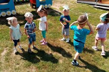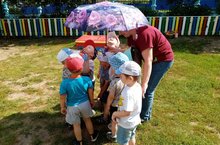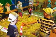 С детьми раннего возраста и младшей группы играли в подвижные игры"Солнышко и дождик"и "У медведя на бору"./Кечкенәләр төркеме балалары белән хәрәкәтле уеннар уйнадык./ Покчи группаысь пиналъёс тунсыко шудонъёсын шудо.