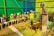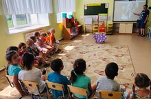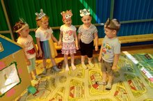 Дети младшей группы рассказали малышам стихи А. Барто, а потом инсценировали сказку "Теремок"./ Кечкенәләр төркемендәге балалар ясле балаларына А.Борто шигырҗләрен сөйләделәр, аннары "Теремкәй" әкиятен күрсәттеләр./ Покчи группаысь пиналъёс асьсэлэсь но пичигес эшъёссылы А.Бартолэсь кылбуръёссэ лыдӟизы,"Теремок" выжыкылэз сцена вылын возьматӥзы.