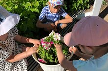 Воспитанники любят ухаживать за растениями/Тэрбиячелэр белэн берлектэ балалар чэчэклэргэ су сибэ, чуплэрен утап топлэрен йомшарта/Будосъёсты утялтон.