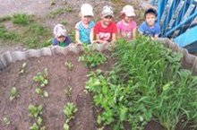 На территории детского сада воспитатели разбили мини-огород, где вместе с детьми наблюдают и выращивают овощи./ Яшелчәләрне күзәтү һәм үстерү вакытында балаларда хезмәт күнекмәләре ныгытыла, кызыксынучанлыклары арта, ел буе алган белемнәре ныгый.