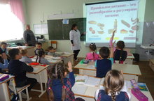 С целью формирования у детей сознательного отношения к своему здоровью, навыков правильного питания, формирования представления о правилах этикета классным руководителем Медведевой И.И и фельдшером Мало-Лызинского ФАП Гарифуллиной Р.Р. во 2 классе проведена беседа на тему «Правильное питание».